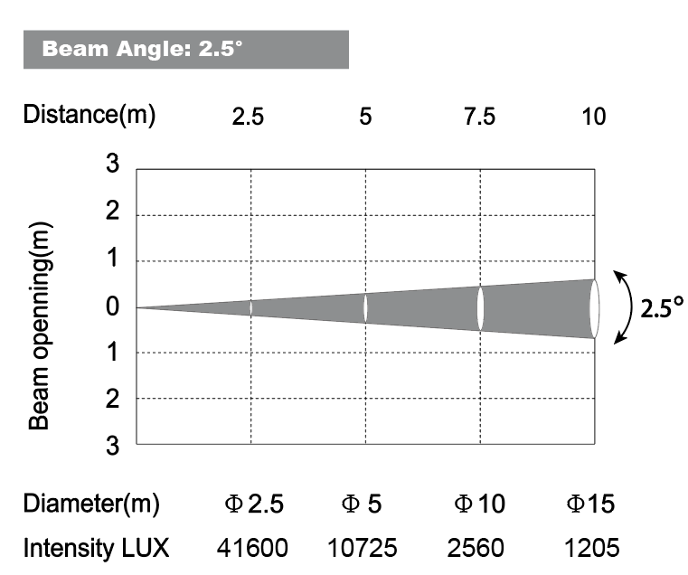 Угол луча: 2,5 °